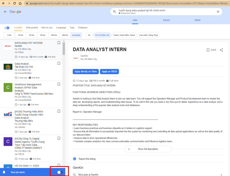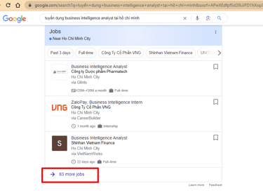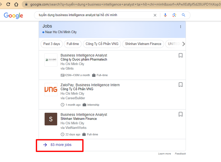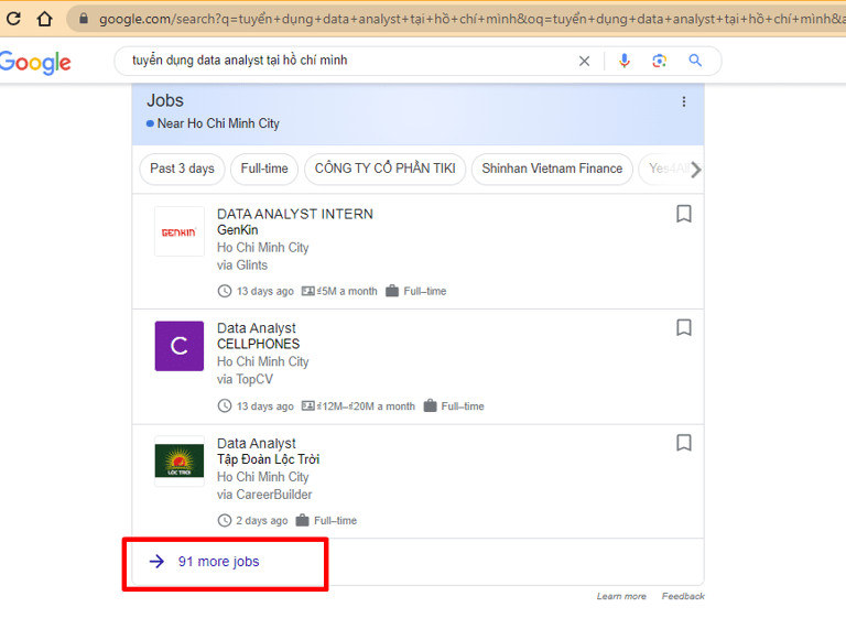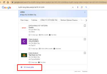 Khá nhiều bạn hỏi anh là xu hướng nghề Data hiện tại và sắp tới như thế nào? Thì đầu tiên a phải trả lời giai đoạn khủng hoảng kinh tế toàn cầu trong năm nay thì các job không bị chững lại mới là lạ ấy, nhưng bằng thủ thuật search qua Google Jobs theo key search "Tuyển dụng + Data Analyst + tại TP Hồ Chính Minh" thì tất cả các job từ các web tuyển dụng sẽ được list ra thì anh thấy số lượng job open cũng không phải là ít nên có thể thấy nhu cầu nhân sự Data vẫn đang còn chứ không như một số nghề gần như off hẳn trong giai đoạn này.