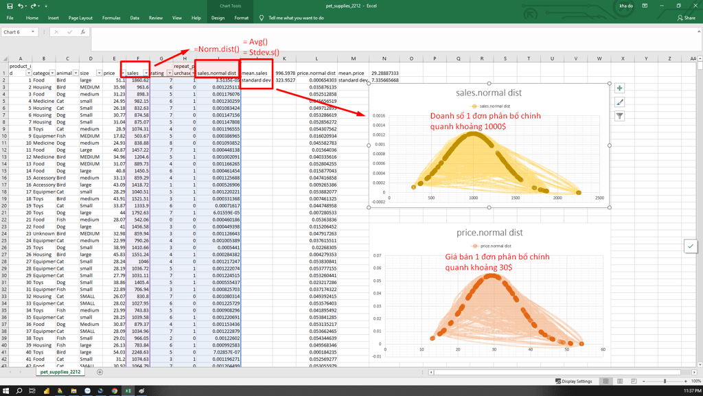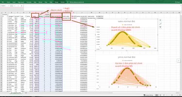 Các bạn tham khảo cách áp dụng cơ bản về công thức và biểu đồ dựa theo phương pháp phân phối dữ liệu chuẩn (normal distribution) như hình bên dưới nha.